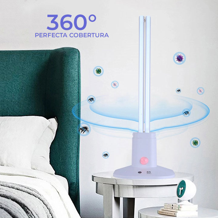 La luz ultravioleta elimina virus, bacterias, ácaros, hongos y microorganismos al destruir su estructura genética (ADN y ARN). Solo debes ubicar la lámpara en el lugar que quieres desinfectar, seleccionar el tiempo del ciclo y retirarte. Se activará el ciclo de desinfección con un pequeño retardo para que salgas del lugar.