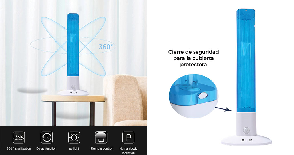 Precaución: Los rayos UVC son dañinos para los ojos y la piel, No mires la lámpara cuando se encienda, para eso tiene retardo en el encendido. Debes salir del lugar a desinfectar.